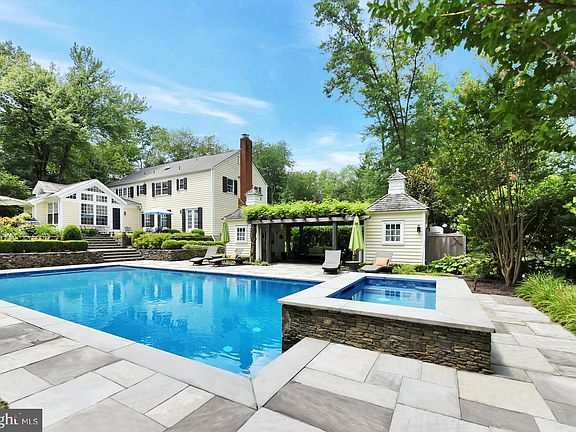 Enter this private oasis and feel a million miles away! This classic colonial is nestled in a wooded lot and features a custom pool, waterfall and hot tub is flanked by two cabanas perfect for entertaining family and friends. Lounge under the pergola and take in sports by day, movies at night from the entertainment center. Enjoy the thoughtfully designed and beautiful gardens surrounding a welcoming bluestone patio - large enough for two seating areas - connected to the recently renovated kitchen, powder room and great room. The stunning professional kitchen features custom Greenfield cabinetry, two islands for cooking and entertaining, Carrera marble countertops, a Wolf range and warming drawer, double ovens and a separate bar area. A laundry area is conveniently located off the kitchen. Two fireplaces, one in the family room and another in the adjoining great room, will gather everyone together. A bright study with custom cabinetry makes working from home effortless. Elegant formal dining and living rooms complete the downstairs. Three bedrooms, two full bathrooms and the main bedroom suite comprise the upstairs. One bedroom features an ensuite bathroom, while two additional bedrooms share a recently renovated hall bathroom. The main bedroom suite has a walk-in closet and room for a sitting area. This location connects seamlessly to stunning nature trails and to Pretty Brook. Easy access to downtown Princeton. Truly the perfect retreat. See video: https://vimeo.com/442717162 2020-09-02