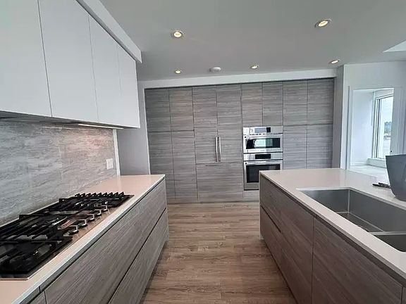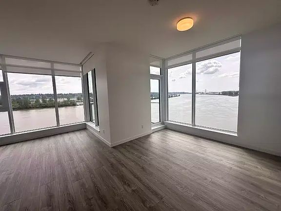 Discover full waterfront luxury at Pier West by Bosa! This exquisite corner unit boasts 2 bedrooms ( both facing to the water), one close den with sliding door, 2 bath, huge living room,1200 sf interior, located at 6 th floor, air-conditioned, 270 degree breathtaking panoramic views of the Fraser River, city skyline, and bridges. A perfect fusion of modern design and comfort, the open-concept living and dining areas flow into a stylish kitchen, ideal for culinary enthusiasts. It features premium BOSCH appliances, quartz countertops, a seamless backsplash, and soft-close cabinetry. Enjoy year-round comfort with air conditioning, and the bathrooms are elegantly appointed. This unit also includes a private locker and parking. Take advantage of top-notch amenities, including a 24-hour concierge, gym, clubhouse with private dining, outdoor lounge, sauna, steam room, and more. Located just steps away from the SkyTrain!No pets, no smoking, one year lease min, move in now.