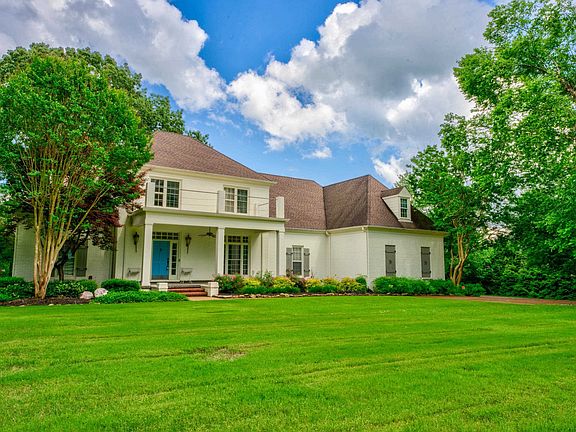 Eads living in a park like setting! 4573 sq ft, 2.1 acres, & NO CITY TAXES! Natural light w/ floor to ceiling windows throughout! 10 ft ceilings! Primary bedroom down w/ 4 beds up (bonus could be a bed!). Open living concept overlooking backyard. Private balcony in primary. Wainscotting downstairs. New carpet & light fixtures! Updated bathrooms. Elevated deck--enjoy morning coffee/quiet time. Spacious 3 car garage w utility room! Detached bldg for storage! 8 mins to BC/St. Georges. Won't last!