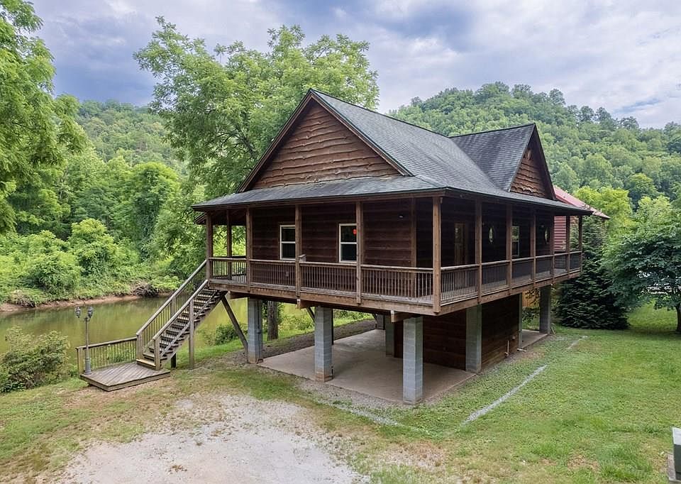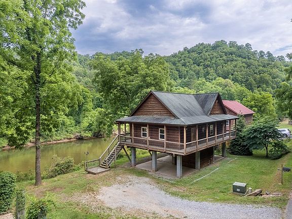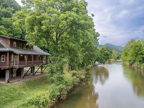 Beautiful log cabin situated riverfront on the Tuckasegee River, every fisherman's dream!! This 3 bedroom, 3 bath home with hardwood floors, wrap around covered deck and master ensuite that is private and a whole story of the home is located on a flat, low maintenance lot . The expansive covered concrete area below the home would make a wonderful outdoor entertaining area, dining area, or extra storage. The expansive covered deck provides is a great space for outdoor living, three seasons a year overlooking the river. Don't let this one pass you by!! This would make an amazing primary residence or vacation rental.