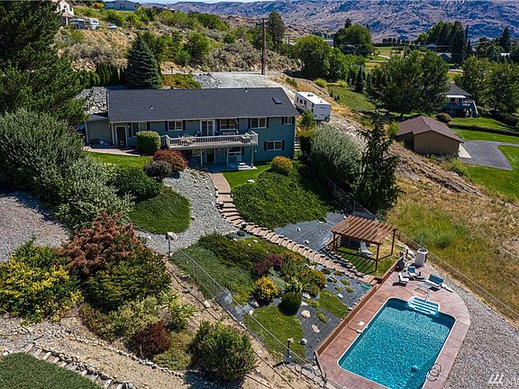 Backup offers Welcome! NEW Heat/Cool, pool heater, plumbing, roof, windows, decks, flooring and fresh paint in and out. Kitchen features quartz counter tops, subway tile backslash and upscale laminate flooring. Views of the Lake Chelan, Butte & River. Main floor 2 spacious master suites, living room, dining, front porch & large composite deck. Lower level Family room, storage, 2 bedrooms, bath & patio. In-ground pool & pergola. Easy walk to town & turnkey with most furnishings. Plus RV parking.