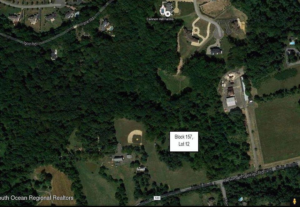 Magnificent secluded 5.9-acre property that backs up to Cannon Hills Farms with a 400-foot entry drive off Newman Springs Road /Route 520 to property. The property consists of over half being uplands with a view of a farm pond bordering the property. Outstanding views of scenic pond w/ gardens surrounding. Very private property close to everything and surrounded by multi-million-dollar estates. Property zoned for residential use. Make this a dream come true!