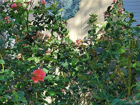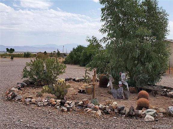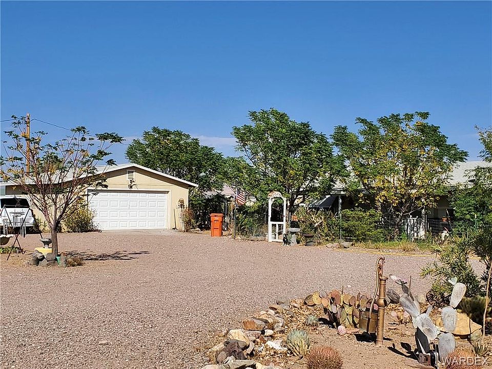 This beautiful, manufactured home has great cost savings upgrades. Stepping into this ground set manufactured 4-bedroom/2-bath home you feel like you are walking into a site-built home. With the split floor plan, it is perfect for a large family or if you are needing office spaces it works as well. The easy-care wood laminate floors and the partially open kitchen is perfect for everyday or to host a family gathering. All the walls are sheet rocked in this home with newer awesome windows that fold in for easy cleaning and awned from the harsh sun in the summer. The Air/Heating Unit is quiet and energy efficient keeping the utility bills low keeping you comfortable year-round. This homes gardens provides a Tropical feeling with the panoramic back drop of High Desert! Front porch is covered and is absolutely lovely for sitting as well the yard feels like a private garden hosting beautiful Roses and a Park Like Setting surrounded with Canna Lilies, butterfly bush and sunflowers when in season. Not to mention the much-needed Shade Trees in this well-established Landscape. Envision sitting out and enjoy morning coffee as you watch the Hummingbirds dance before your eyes. Outside of this private garden, this acre property is completely fenced and rocked for easy maintenance of the surrounding grounds with Garden areas already for you to start your own home-grown vegetables. If you are into herbs, then this place has a head start. One of the largest Eucalyptus trees in the area along with Rosemary and Sage. Not to mention the Lemons, Apples, Oranges, Plums, Pomegranates and Grapes to harvest. The 24x24 garage has electric for those what not projects, as well Hook-ups for the Vacation on Wheels set up on the north side of the home to easily access for those guests that may pop in and on the east side there is a parking pad for the quads. Only 30 Minutes from Laughlin NV or Kingman AZ and an hour and a half from Las Vegas.