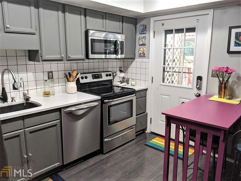 Two-story, end unit townhouse in the heart of East Cobb. Award-winning Cobb County schools, including Walton High School, walking distance to Kroger shopping center, Restaurants, Gyms, Nail Salons, etc.. This home has been recently updated with new paint, new flooring, and lighting fixtures. Vaulted Master bedroom with walk-in closet and private balcony, Hardwood Flooring although out, Front and Rear Entry, 2-Car Carport (to protect your car from the sun) and Private large Patio. Updated kitchen with quartz counter top, Gorgeous stone fireplace is the highlight of the main living space. Separate dining room. The spacious eat-in kitchen has plenty of cabinets and access to the covered parking. The private patio is the perfect spot to grill, relax and rewind. The community features a newly paved road, renovated clubhouse two in ground pools (with one just a few steps away from the unit), and brand-new tennis courts. Tenant is in place until 7/2021. HOA has a rent cap, but the new owners will be able to continue renting out the unit (or move in) after the leasing agreement ends.