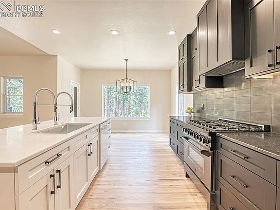 *** Wow! *** Completely Updated with Designer Finishes Throughout *** Almost 6 Treed Acres *** New Roof & Gutters 2023 *** Exterior Painted 2023 *** Large Covered Deck Rebuilt in 2022 *** Well Water but Woodmoor Sewer (No Septic System!) *** 3 Minutes to I-25 *** Kitchen features 36" 6 Burner Dual Fuel Range, Colorado Marble on Kitchen Island, Under Cabinet Lighting, Oversized Sink with Dual Faucets, and Large Cabinet Drawers *** Very Low HOA Dues & Light Covenants (Horses Are Allowed) *** 38x30 Falcon Barn Could Be Converted for Other Animals *** Walkout Basement *** Main-level Office *** 3 Gas Fireplaces *** Master Bath features Round Soaking Tub, Dual Shower Heads, Extensive Tile, and His/Her Walk-In Closets *** All New Light Fixtures, Carpet, & Paint *** Main-Level Laundry *** 3-Car Garage with 8' Doors *** Second Master Suite in Basement with Private Bath *** Don't Miss It! ***