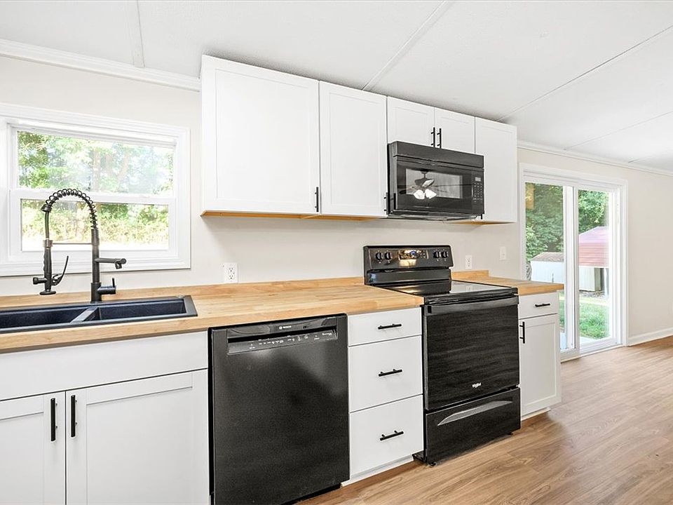 Beautifully remodeled Double wide on over 1/2 acre of land. Located in quiet subdivision near the lake about 10 minutes from Interstate 85. This home has 3 bedrooms 2 full baths with open floor plan. The kitchen has been updated with new cabinets and butcher block countertops and all new appliances! All new LVP flooring in living areas and new carpet in the bedrooms. Both bathrooms fully updated. Large master bedroom with large walk in closet and double vanity and large shower. Outside you'll find a large partially fenced back yard with firepit and an Oversized double carport. New HVAC system with ductwork. Metal roof and new permanent block foundation. FHA compliant and will be detitled.