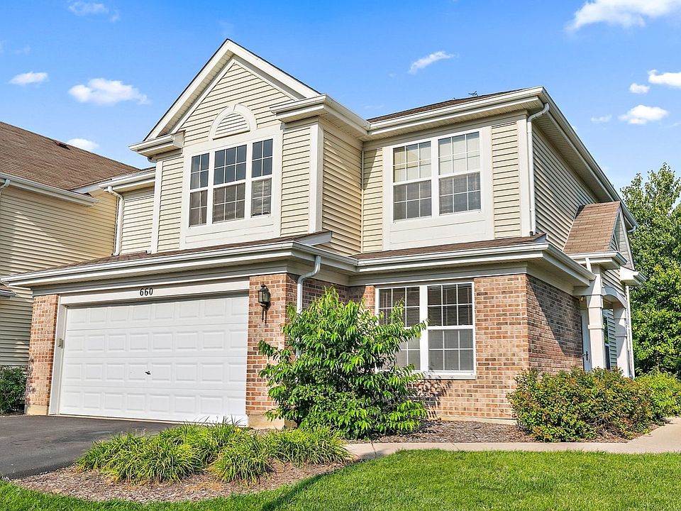 Don't miss this lovely & spacious 2-story End-Unit Townhome located in beautiful Cambridge Lakes! Features of this townhome include: New wood laminate flooring in living room, dining room, office & bedrooms - new paint throughout - living room with soaring 2-story ceiling, ceiling fan & fireplace -kitchen with upgraded 42" cabinets, backsplash, stainless steel appliances, pantry closet & eating area - master bedroom with vaulted ceiling, ceiling fan & walk-in closet - large double-bowl sink/vanity area, soaking tub & separate shower in master bath - walk-in closet in 3rd bedroom - 6-panel doors - sliders off breakfast area to patio - all this along with the amenities Cambridge Lakes has to offer (pools, clubhouse, fitness center, walking trails, parks plus more!) Conveniently located just minutes off of 90 Expressway, Route 47, 72 (Higgins) & Route 20. FHA & VA approved! Rentals are allowed.