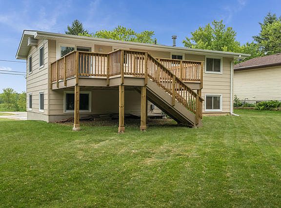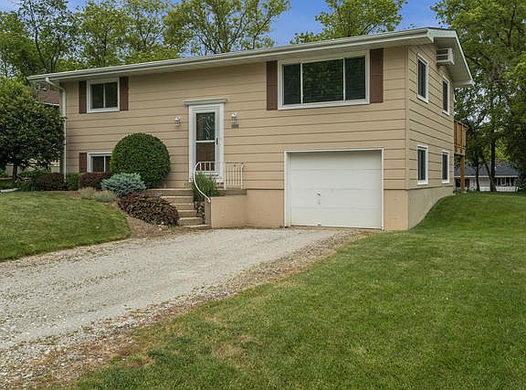 Welcome, Home! The slate entryway greets you in foyer & leads you to open staircase w/ornate black wrought iron spindles & beautifully finished wood stairs. Vaulted ceilings in the living room, kitchen & dining room give the space a wide-open feel; perfect for entertaining. Kitchen remodeled (1 yr ago) w/espresso shaker cabinets, granite countertops & breakfast bar/island, stainless steel appliances. The dining room overlooks sliding glass doors w/built-in blinds that lead to the maintenance-free back deck(1 yr). Living room, kitchen, dining room & hallway all boast 3/4'' solid oak flooring & can lighting throughout. The main bath updated w/ceramic tile flooring & tub surround. Windows replaced 5yrs. Carpet in upper bdrms 1 yr. 3 bedrooms possibly 4 (office space currently), 2 full bathrooms. Close to the beach & the heart of Paddock Lake.