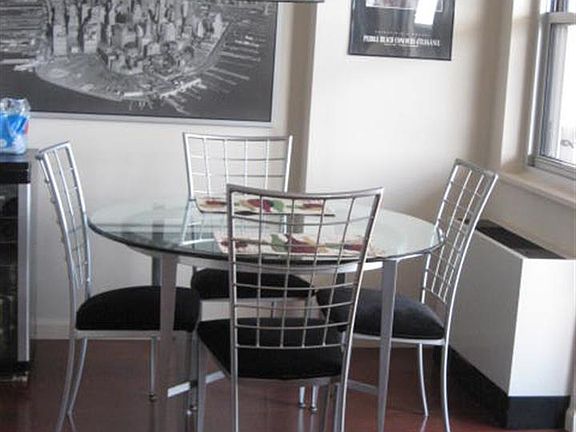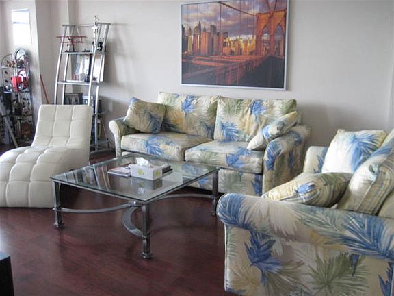 CHANGES MADE! New cherry stained wood flrs, ALL NEW RADIATORS! -Direct NY view all rms w/private terr off DR--New stove, stainless DW, refrig, subway style tile backsplash in Kit, new bath vanity, baseboard ++ Maintenance inclu all utilities ($635.02)--- RE Taxes= $ 466.19(deductible)---U/L mortgage interest= $ 327.76 (deductible)-Capex: $ 71.59 TOTAL monthly $ 1500.56-Parking & exercise room extra fee. MAY have waiting list for a pet- 24 hr doorman,outdoor heated pool, NY bus and mini vans at door