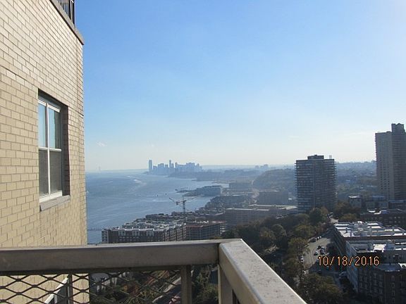 Penthouse, high ceilings. Hudson River view from the large corner terrace. Tons of closet space and beautiful move in condition. Full amenities highrise building with 24hour concierge, GYM, Dry Cleaning, outdoor pool... Easy and quick commute to NYC at front door by bus and ferry shuttle. Close to shopping, restaurants, movie theater...Near 167 acre park, lake, tennis courts,jogging trails...