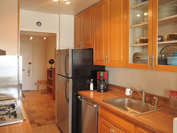 RIVER VIEW from ALL rooms, then take a look at the NEW bathroom with white tiles, cobalt blue accent trim, HAND PAINTED wall tiles as a backdrop to medicine cabinet, modern 1 piece Kohler commode,(no tub) Wood faced kitchen cabinets, light parquet floors, wall of closets in MBR. Maintenance inclu all util: $ 610.25- RE Tax: $ 534.70 ( deductible) Bldg Mortgage interest = $ 338.34 (ded) Loan interest CAPEX: 74.10 ($ 1,557.39 total)-Parking & gym extra -Outdoor pool, 24 hr doorman, NY bus & minivans at door ( updated 2-22-2016 )