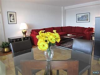PANORAMIC NYC and HUD.RIVER VIEWS FROM ENTIRE APT. and THE LARGE TERRACE.MOVE IN CONDITION W/LOTS OF CLOSET SPACE.WELL MAINTAINED,FINANCIALLY SOUND LUXURY HIRISE BLDG W/FULL AMENITIES.EASY COMMUTE,MINUTES BY FERRY SHUTTLE OR 15 MINUTES BY BUS TO NYC AT DOOR STEP.MAINT.FEE $581.83(INCLUDES GAS,ELECTRIC,AIR CONDITIONER,HOT WATER,POOL,LIBRARY...)RE TAXES $474.639DEDUCTIBLE).U/L MTG $336.54(DEDUCTIBLE).PARKING $95 PER MONTH,GYM $150 A YEAR OPTIONAL.