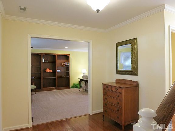 Spacious, immaculate N. Raleigh 3BR/2.5BA/2277sf 2-story w/oversize detached 2-car Garage on level cul-de-sac lot in Tealbriar - walk to shops/restaurants/dog park! Lg rocking chair front Porch; Screened Porch overlooks wooded, fenced backyard w/Storage Shed & paver Patio. New gas Water Heater 2014, new gas furnace 2010, roof 6 yrs old, new quartz KIT ctr 2014, new Bosch DW 2017, new carpet main level 2010, new crawl space vapor barrier & dehumidifier 2011. Hardwood flrs & crown molding throughout main level. Welcoming Foyer w/coat closet; spacious formal Dining Rm w/chair rail molding; lg front-to-back Living Rm w/neutral carpet, gas log FP & glass doors to Screened Porch w/bead board ceiling & CF; Kitchen w/lots of white cabinets, island, neutral quartz ctrs, subway tile backsplash, smooth-top range, MW, DW, walk-in pantry & sunny Bfast area set into bay window; Half Bath w/hrdwd flr. 2nd flr w/newer neutral carpet throughout: lg vaulted MBR w/lg WIC & CF opens to Master Sitting Rm w/closet; vaulted Master Bath w/soaking tub, sep tiled shower & dbl sinks; 2 add'l spacious Bedrooms w/lg closets (BR3 has a WIC & CF) share Hall Bath w/tiled tub/shower & neutral vinyl floor; 2 linen closets & convenient 2nd flr Laundry closet.