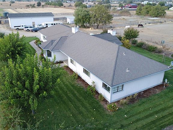 Peaceful & welcoming ranchette ready for your horses! Fresh interior paint & carpet. Spacious floor plan offers formal LR/DR with built-ins, pellet stove & wet bar. Separate family room has gorgeous open wood beam ceiling & attractive rock fireplace. Remodeled kitchen offers granite counters, center island with stove top, stainless steel appliances, painted cabinets with built-ins, breakfast bar, and large nook. Remodeled master with granite double sink vanity, tiled step-in shower, jetted soaking tub and walk-in closet. Indoor laundry room with cabinets, sink and adjoining full bath with shower. Hall bath offers tiled double sink vanity and tiled shower/tub. Patio off family room is a perfect spot to sit and enjoy the neighboring mountain range views! Horse facilities include sand riding arena with watering system, pastures, 5 stall mare motel with tack room and 24x60 hay storage. San Benito Co Water District irrigation hook up is available. 1/4 interest in shared well.