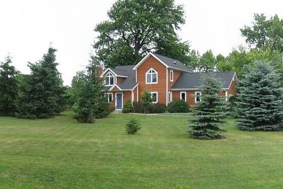 Home situated in private setting on 2 acre. Open floor plan with hardwood and maple floors, crown molding and large walk-in pantry in kitchen. Cozy fireplace in living room overlooks sweeping lawn and stately trees all around.