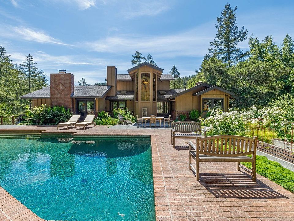 Nature,Privacy,and Unmatched Beauty.Experience this stunning resort-like retreat with sweeping views of the mixed forest,two seasonal streams and a lovingly cared for garden of native plants,mature roses and planting beds for edibles.The idyllic setting includes luxury features such as a large pool with hot tub,cold plunge,and a state-of-the art Greenhouse from England.The 23+-acre property has an abundant water supply from the V-shaped catchment in the hillside above it,and a hiking/riding trail meandering up to the ridgetop.The 3-story contemporary primary residence is light and bright,with soaring ceilings,wrap-around decks,and see-through views of the garden and trees from every room on the ground floor.Above the spacious 3-car garage is a charming fully equipped guest suite and at street level,2 horse paddocks and a tack shed.The main house offers 3BD|2.5BA,dedicated office space with built-ins,formal entry/dining/living room,chef's kitchen with stainless appliances and breakfast bar,and a lower bdrm level with outdoor deck access.The primary suite is on its own level with a large bathroom and stunning views of the forest.Don't miss this incredible opportunity to own a quintessential piece of West Marin,only 15 minutes to Highway 101 and 30 minutes to the Golden Gate bridge.