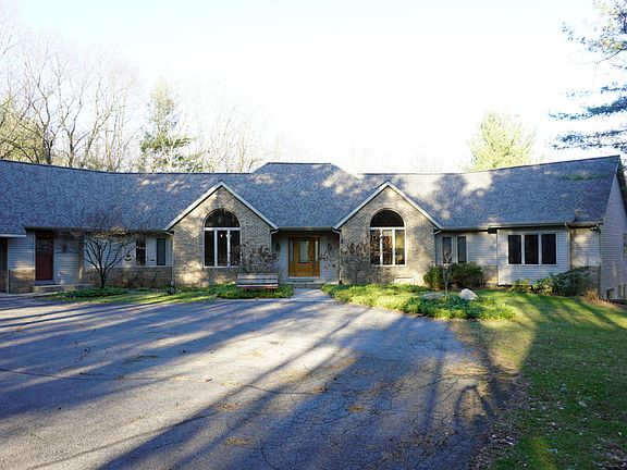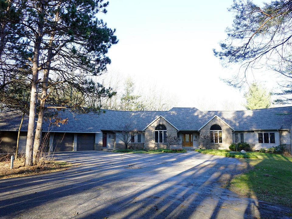 Welcome home! Sprawling, custom-built ranch home set on 7+ acres of forest at the end of a long, private drive. Enjoy spacious areas for play or recreation, and wander woodland paths on 33 acres of shared natural preserve. Gather around the fireplace in the living room with hardwood flooring and cathedral ceilings. Main level boasts a large kitchen, separate formal dining directly across the hall, master suite with jacuzzi tub, guest suite, library with an abundance of bookshelves, den area with French doors (use as a study, music room, etc.), home offices, spacious laundry room and separate mudroom. Large windows provide much natural light, and you will enjoy watching the wildlife all around you. Tranquil, country living close to picturesque Rockford and the City of Grand Rapids.