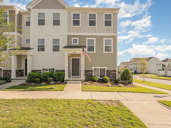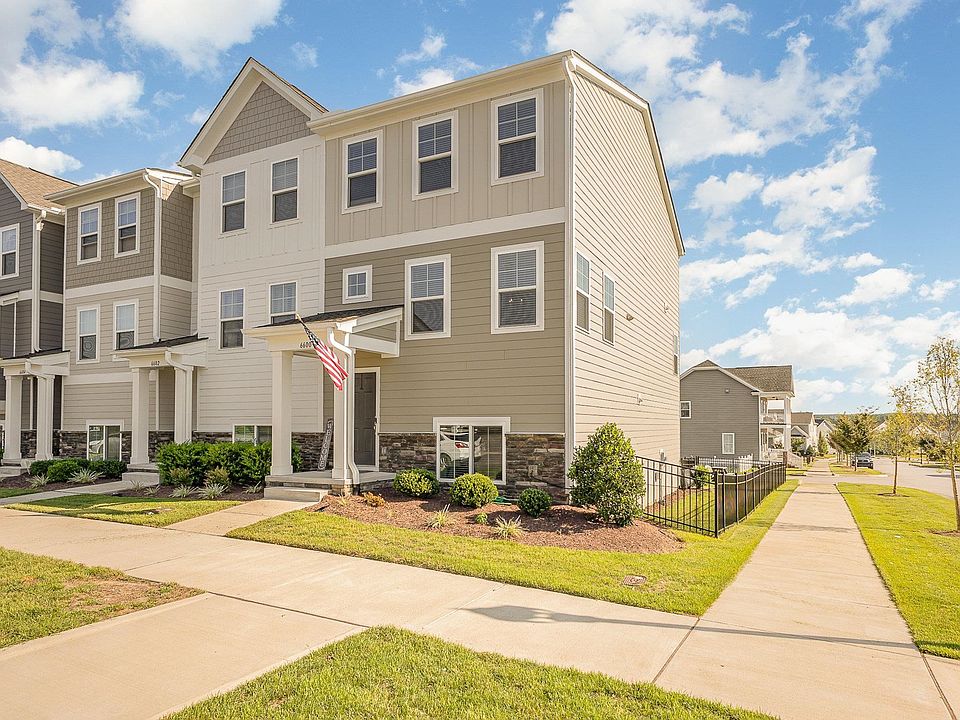 Stunning property in the highly desired 5401 North Community. End unit, three story townhome with a large, fenced yard. Top Lennar interior selection package on a rare lot. This home features new light fixtures throughout, new kitchen fixtures, new disposal, new garage motor/exterior keypad, custom blinds throughout, and wrought iron fenced yard. The property's security system has sensors on first floor windows, all exterior doors, cameras in the front/rear, and is app controlled, including thermostats. This end unit's natural light creates a bright, beautiful living space. LOCATION LOCATION LOCATION!!! 5401 North Community has a community pool/clubhouse, community garden, coffee shop, brewery, restaurant, dog groomer, access to the Neuse River Greenway, walking trails, dog park, and more!! HOA fee includes yard maintenance. Neighborhood rental cap has been met, no investors at this time.