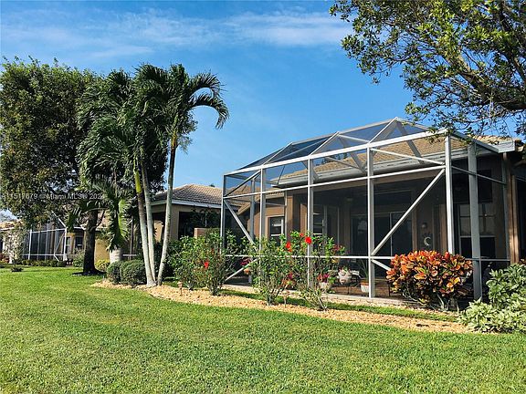 LAKEFRONT LUXURY distinguishes this captivating home at the posh Tuscan-themed community of Villaggio. Why settle for a backyard view of fences, walls and hedges? With its premium waterfront lot, this spacious property offers an expanded sun-drenched garden lanai, overlooking flowering trees and lush tropical plantings. Entertain in style with an open floor plan that seamlessly flows from the living/dining areas to the gourmet kitchen - fit for a chef. The custom layout allows the den to easily transform into an additional bedroom. Luxe options include vaulted ceilings, high-end finishes and a coffered ceiling in the owner's suite. Upgrades include new HVAC system and washer/dryer. Villaggio's resort-style amenities feature a tennis pro, pickleball, indoor-outdoor swimming and billiards.