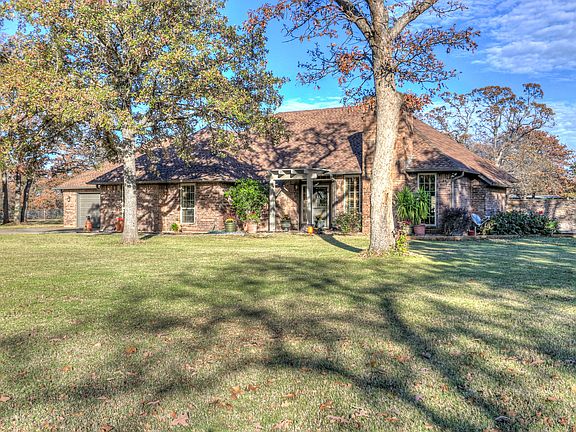Private oasis minutes from everything. This home is centered on 5 beautiful park like acres to enjoy the entire gorgeous property which is zoned agricultural/residential. Beautiful kitchen w/granite counters & sink, SS appliances, large breakfast bar open to the eat in kitchen & great views onto the massive custom patio. Truly designed for indoor/outdoor entertaining. Large LR w/porcelain tile flrs, vaulted ceiling, FP & wonderful light streaming from multiple windows. The large master suite features a vaulted ceiling, French doors onto a patio, large master bath w/granite counter, dual vanity, separate shower, private toilet area, soaker tub & walk in closet. The 2 secondary bedrooms have large windows, an additional walk in closet & shared full bath w/granite countertop. 6 inch walls w/blown insulation, raised ceilings, monitored 3 zone alarm system covering house & both out buildings, cameras, 13 zone sprinkler system, Generac 17K whole house generator. New roof, great location.