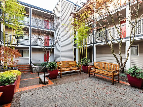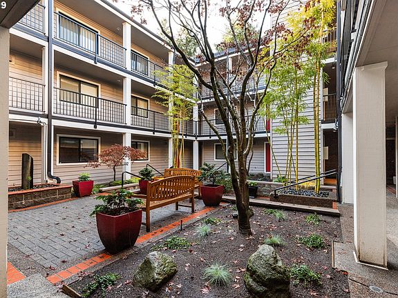 Mt. Tabor lifestyle! Like new ground floor condo in secured building. Fireplace, master suite w 3 closets, double vanity in full bath. 2nd bath w shower. New glass top convection/ conventional oven, appliances incl full sized washer/dryer, stay. Patio leads to deeded parking. Locked storage + locked bike storage. Indoor open air zen courtyard. Mt. Tabor trails, dog park across street. Close to dining, coffee, community garden, WPU, PCC.