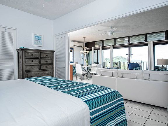 This beautiful condo can be your dream home located at Point Pleasant Resort in St. Thomas Virgin Islands. This is an ideal unit for use as a rental unit or personal living. Located on St. Thomas Island on the East End a short distance from Red Hook shopping, dining, night life and the ferry to St. John and the BVI’s. The main living area boasts spacious seating including a new pull-out queen sleeper couch. Beautiful views throughout this villa of the surrounding ocean and islands, whether on the large, covered patio or lying on your king-size bed drinking your morning coffee. The king-size bedroom can be closed off for privacy or kept open to allow for natural light and amazing views. The attached bathroom can be accessed through both the bedroom and the kitchen. Wall to wall sliding doors with screens allow for enjoying the breeze of the island winds while preparing meals in the kitchen. This unit has a great history of short-term rentals. Point Pleasant Resort offers very competitive and professional rental services making it very easy to own this villa and rent out at your convenience. Point Pleasant Resort offers 3 pools, 2 restaurants and a small gym. Located steps away from the middle pool, Ocean 180 restaurant and the laundry. Sun and Sea restaurant is onsite a short walk down the hill. The office and captains’ lounge right around the corner makes it an extra convenience for you and your guests. A short walk below the condo is Sugar Beach, a small beach accessed by very few people giving you the feeling of being on your own private beach. The nature hiking trail is directly below with a private gazebo.
