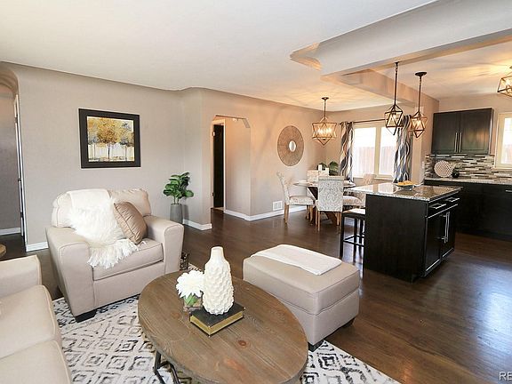 A great opportunity to live a few blocks from Old Town Arvada. This cute as a button turnkey ranch style home was completely renovated in 2017 and is ready for you to move in. Its combination of mid-century charm and modern amenities are just perfect. Just a few of the wonderful highlights of this home are; beautiful slab granite countertops, iridescent glass tile backsplash, Frigidaire SS appliances, and medium oak hardwood floors. Also featured is a new furnace in 2021 controlled by a Nest thermostat. Gorgeous new split rail fencing provides wonderful privacy as well as a contemporary vibe. All appliances are included including a newer washer and dryer. The spacious and private primary suite boasts its own ensuite bathroom. Both secondary bedrooms are spacious and accommodating. Parking is abundant with 3 off-street parking spaces, a most excellent oversized one car garage, and even includes parking for an RV. So bring on the toys, there's lots of room for everything. The newer windows, roof, gutters, and siding make this a low-maintenance home that will provide a lifetime of treasured memories. Oh, you will absolutely love the charming neighborhood of Columbine Acres which provides easy access to Columbine Park and downtown Arvada with its fun breweries, restaurants and shops. Plus, light rail is just around the corner which will zip you into downtown Denver or to DIA.
