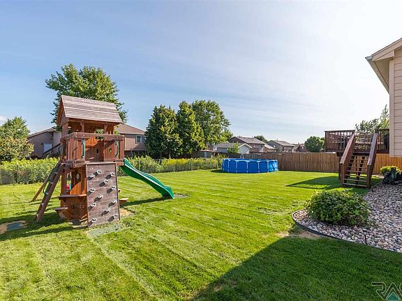 Great southwest Sioux Falls location. Home is located on a non-thru street ensuring minimal traffic. The garage is finished and provides for ample storage. The large foyer includes a coat closet and plenty of room to kick off the shoes. Main floor includes 2 large bedrooms and a full bath with a double sink. The kitchen boasts a gorgeous tile back-splash and stainless-steel appliances. The pantry allows for an incredible amount of storage and the peninsula allows for even greater counter and cupboard space. Both the living room and family room are great spaces for either relaxing or entertaining with family and friends. Lower level also includes an additional bedroom, bathroom and giant, finished laundry room. Underground sprinkler system is sure to keep the yard lush and green. The large backyard is perfect for kids, pets, gardening, relaxing or whatever your heart desires. Pool and play-set are already included. Just finish off the back fence for your own private oasis.