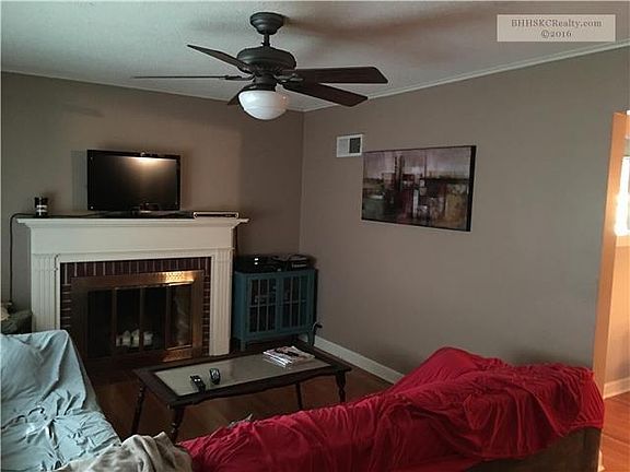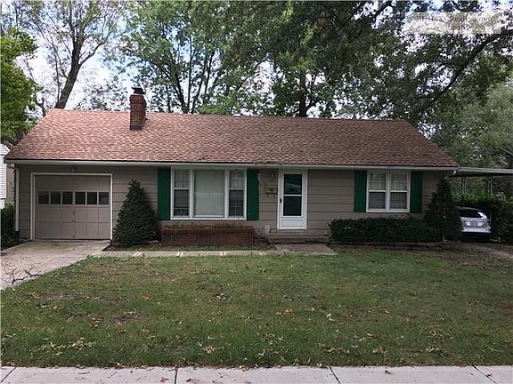 Great home in the heart of Overland Park! Hardwood floors throughout, living room has nice ceiling fan & wood burning fireplace. From dining room, you can access the added tiled floor sunroom which leads off to the deck & gorgeous fenced in backyard! There are lots of trees throughout the entire yard. Front of home has paved driveway to attached garage in addition to a gravel drive which leads to a carport on other end of home...two covered parking spaces! Would make great first home or rental property!