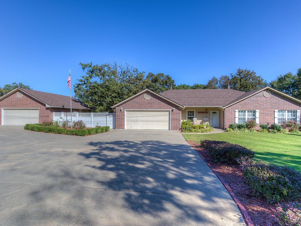 Tranquil landscaped estate w/circle drive to garage & shop w/new Epoxy floors for 4 car parking. RV pad & 12x30 storage shed for lawn equipment. Detached garage/shop is 24x30 w/ heat/air. 2018 4 high impact shingle roof. Home features new kitchen appliances & granite countertops. Bonus room with French doors for office or game room w/pool table included. New updated tile shower from your master bdrm. Storm shelter. enjoy the sound of your waterfall while sitting under the pergola or covered back porch.