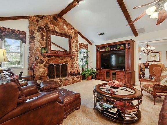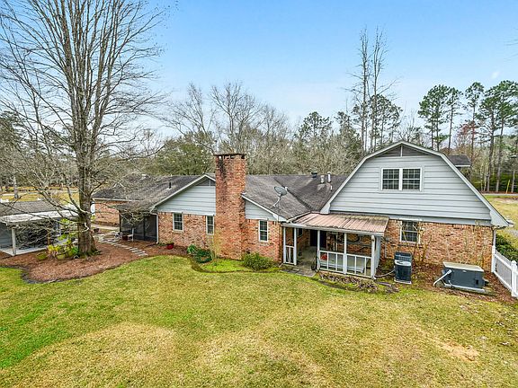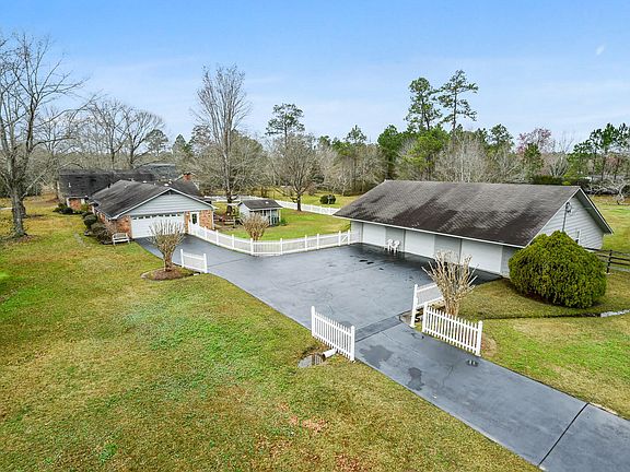 Spacious 4br/4b home situated on tree studded 3.4 acre corner lot in desirable Humphrey Farm Subdivision. This home has been recently updated with custom kitchen cabinets and solid surface counter tops, stainless appliances, two of the downstairs baths have remodeled with new culture marble showers with glass doors, new Pella argon gas filled windows, & new exterior doors from Southeastern Doors. Great room is huge with vaulted ceilings and exposed beams. Also features gas log fireplace with stone hearth. Two spacious bedrooms downstairs and two bedrooms upstairs. Nice bonus room for playroom or home office. Property has detached 2000 SF garage with workshop area, screened in porch, ''she shed '' pump house, picket fence and fencing around pond and established garden area