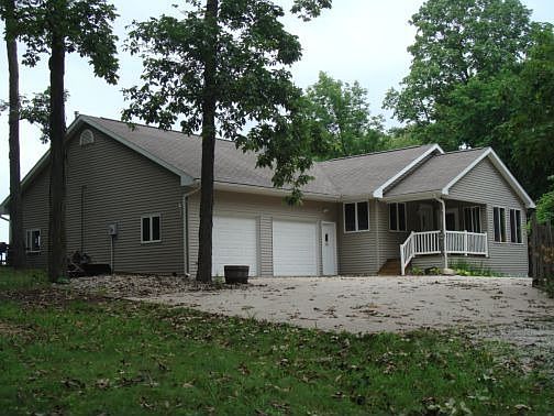 This beautiful home on two Large Lots has a Great Lakefront Main Channel View. It is meant for entertaining all ages. MAIN LEVEL with Vaulted Ceilings has Living Room, Formal Dining Room, Kitchen with eating bar and dining area and all new Stainless Steel Appliances, Master Bedroom with Jet Tub and His & Her Walk-In Closets, Den/Study, Full Bath with Laundry Area. LOWER LEVEL WALK-OUT has Large Family Room with Fireplace (N.Gas w/Remote), Three Bedrooms, Full Second Kitchen, Full Bath, Storage Room. 2.5C Attached heated Garage with Shop. Take the concrete golf-cart path down to the shoreline. The large lakeside Deck has breath taking views. Covered Front Entry Deck. Well landscaped front yard with many mature trees and new Playground Area (Equipment stays). Close to Golf Course, Airport, and Highway 44. Let the entertaining begin! Lots 427 & 428