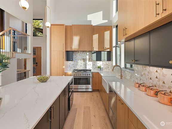 This spectacular sanctuary is nestled in the heart of West Seattle & epitomizes modern living! This home offers 4 bedrooms, 3 bathrooms, including soaking tubs and a steam shower, 16 ft ceilings and a fabulous kitchen make this 3,120 sq ft. home the perfect blend of function and comfort. The 776 sq.ft. rooftop deck, with views of the Puget Sound, is perfect for entertainment. The open floorplan seamlessly connects the living spaces and kitchen - a true culinary haven. Come enjoy the media room w/ a projection wall, perfect for movie nights, and floor-to-ceiling windows that bathe the interior in natural light. This contemporary gem is offering a harmonious balance of luxury and style!