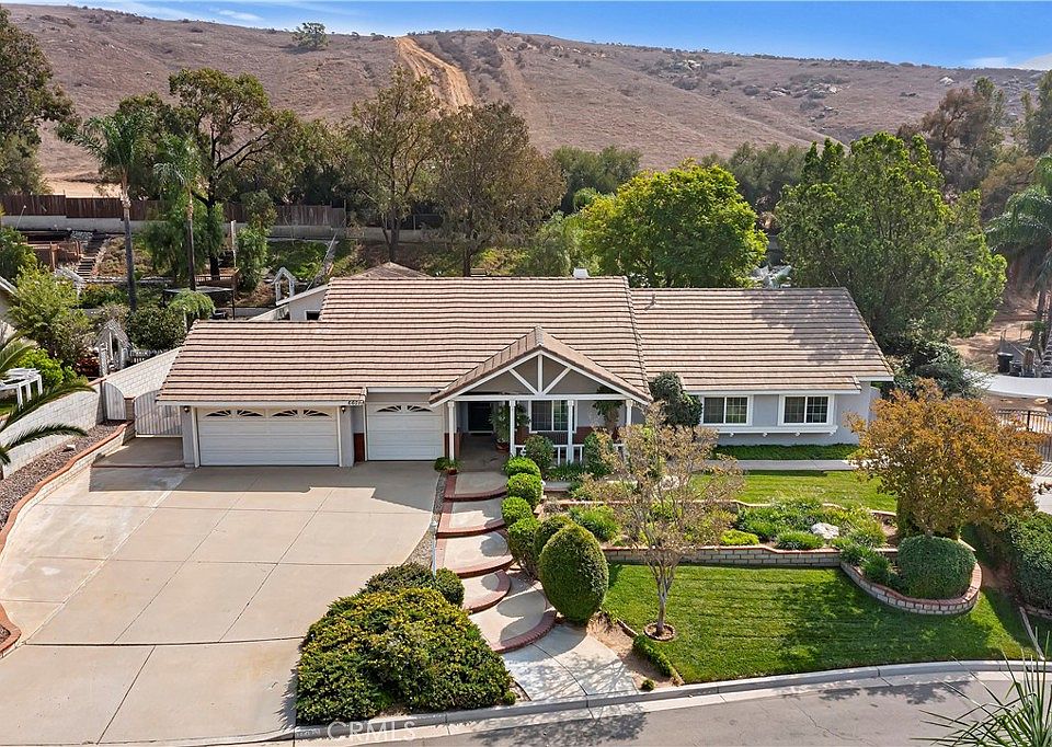 Open House for 02/04 is cancelled. Gorgeous home located in Jurupa Valley with beautiful mountain views with a detached garage that can be converted to an ADU please see pictures for the diagrams/ floor plans. When coming up to the home you will see mature landscaping and beautiful front porch with sitting area. Newer updated kitchen with granite counter tops, cabinets, stainless steel appliances, updated lighting and sink. Kitchen with a breakfast bar. Living room and dining room. Family room with fireplace. Open spacious floor plan. Large master bedroom with updated bathroom and walk in closet. Guest bathroom is updated with newer vanity and tile around the tub. Newer dual pane windows throughout the home. Ceiling fans throughout. Roof was replaced in 2018 with tile. Upgraded heating and A/C. Spacious 870 square foot workshop/garage with ample amounts of space to store toys or cars. 1 bedroom and 1 bathroom is off of the workshop. RV parking/ Access. 3 car garage with direct access. Backyard features mature landscaping with several open lattice patio covers, built in bar-b-que, pond and outdoor fireplace great for entertaining. Great curb appeal! This is a must see!
