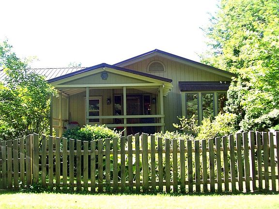 Gardener's Delight on a Private Setting. Many updates in the past 20 years includes a newer kitchen, bathroom & windows. Master Bdrm has full bath potential. Beautiful stone wall behind wood stove in living room. Dining room opens to a covered porch. 12 course bsmt could be finished. Wired for a Generator. Detached 2 story garage has dog door & dog run. Propane heat on 2nd floor makes this a great studio, office or man-cave! Lovely dogwood tree and perennial flowers all around including apple trees, a blueberry patch and a kiwi bush.
