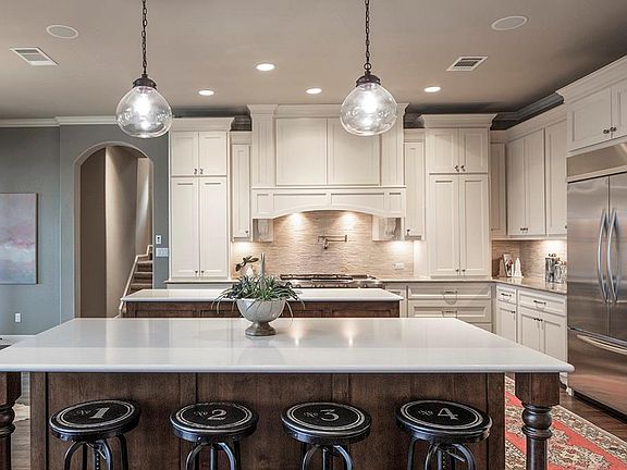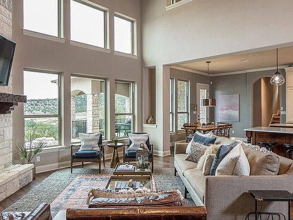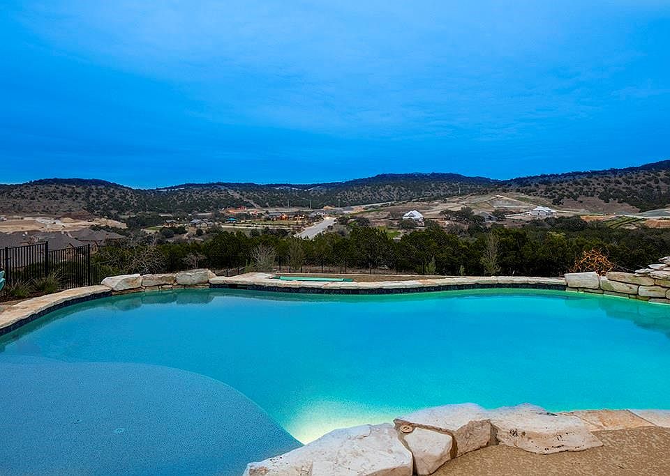 Driving through the gates and up the hill, you know that beyond the front door views must await, and wow they do not disappoint. Custom home with every detail considered and impeccably finished from the hardwood flooring, plantation shutters, custom paint colors, designer lighting, landscape lighting and of course the lot and setting make this home unlike any other. The trampoline is safely nestled into the ground, the backyard is leveled with an oversized pool and fire pit. Floorplan is perfection, master suite faces the vistas tucked discreetly away, along with a private study and a guest room all located down, the layout suits the most lifestyles. Media room is tucked over the garage (quiet), storage spaces are plentiful, secondary bedrooms are large, a game room even a back staircase for quick trips to the kitchen- Oh the kitchen! This is a custom kitchen, with Quartz counters dual islands, commercial grade appliances make this heart of the home the perfect gathering place.
