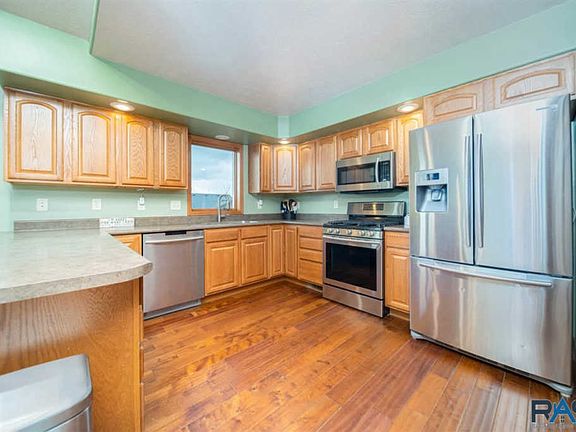 So much to love about this beautiful 4 bedroom ranch style home in eastern Sioux Falls. The main level provides plenty of space and features an open floor plan with a nice sized living area and hickory wood flooring. The kitchen includes stainless steel appliances, gas stove, and a pantry. There are two more generously sized bedrooms including a master with a huge walk in closet on the main level. In addition youâll love the convenience of the mudroom which includes a ½ bath, sink, and main floor laundry. In the lower level youâll find two more bedrooms, a spa-like bathroom, and gorgeous stone fireplace and bar area. The tile flooring with in-floor heat and gas fireplace will keep you nice and cozy during the winter months. This home is a garage lovers dream with drain tiles, heated floors, and extra cabinet and storage space. Don't miss out on this conveniently located home in a great neighborhood near the bike trails, parks, shopping and more!
