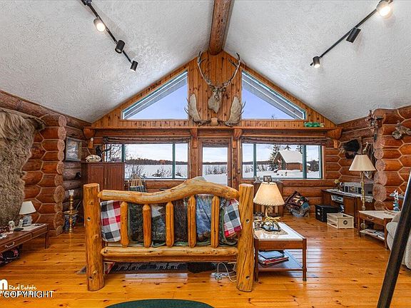 Welcome to the TOTAL Alaska experience! Where you can live & run your business from the same spot. Enjoy living in the traditionally built 3 bed 2 bath log home with exquisite views of Scotty Lake & Denali right from your living room. The Bed and Breakfast is a separate structure. Boasting 5 separate rooms, each with its own bathroom and rustic Alaskan theme.The "ready room" is located in the B&B on the main level. With a half bath, a wet bar and large picture windows facing the lake and the Alaska Range, it's perfect for breakfast, playing pool and other games or just hanging out. There is a 2 car garage attached. There is a wonderful, small dry cabin at the edge of the lake as well as an outhouse for your guest's convenience. The landscaped property is almost 5 acres with several outbuildings/sheds included. The B&B and main cabin are heated with geo-thermal heat, so your only utility is electricity. Enjoy all the outdoor activities your family and guests can handle within close driving range. Hunting, fishing, kayaking, snow machining, or just lounging about the firepit or dock. The B&B is being sold as a turn-key business with all furnishings and linens included. The log cabin home is 1603 sqft and the B&B comprises 5 bedrooms, 5.5 bathrooms with rec room is approximately 1800 sqft. You will not find a more beautiful location with a breathtaking view of Denali!