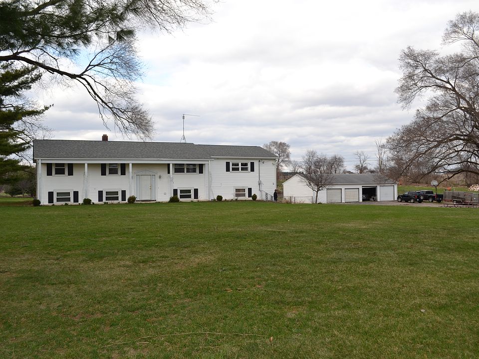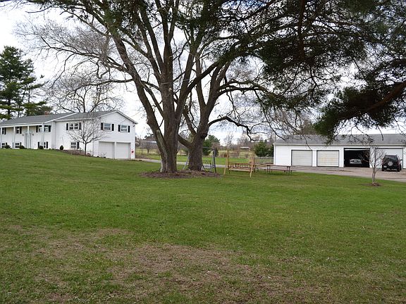Beautiful move-in ready raised Ranch with over 2800 sqft of living space. Enjoy the quiet countryside just minutes from the city on this farmette on nearly 5 acres. Beautiful HW floors throughout the main level living space & bedrooms. Open concept dining room, great room & large eat-in kitchen. The kitchen features tile flooring, an abundance of cabinet & counter space including a breakfast bar. Sliders from the kitchen lead to an enclosed porch overlooking the backyard. 2 bedrooms including the spacious master with double closets & a bathroom with double sinks complete the main level. Downstairs are 2 more bedrooms, a bonus room with a closet, 2nd full bath & a large family room that leads to the 2 car garage. The property features an additional 4 car detached garage, plenty of pasture space with wildflowers large garden spaces & an outbuilding with 4 horse stalls & a tack room. Professional landscaping, New roof on house & garage (2020), water softener (2018) HVAC (2008).