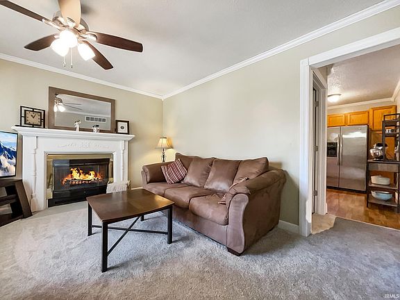 This Covenant Westside location is perfectly situated halfway between Evansville and Mt. Vernon, offering easy access to USI, Marrs Elementary, shopping, restaurants, and more. The property boasts an elevated corner lot with a covered porch, providing excellent curb appeal. Featuring a low-maintenance brick front exterior, this home includes 3 bedrooms, 2 baths, and a 2 1/2 car garage, along with a finished basement. The living room is adorned with crown molding and a cozy wood-burning fireplace. The kitchen offers ample storage, counter space, stainless steel appliances, an eat-in nook, and glass doors leading to the back patio area. Updated baths feature tile flooring, while the secondary bedrooms boast hard surface flooring. The master suite includes crown molding, a full bath, and a stand-up shower. The basement is equipped with a built-in wet bar and family room, perfect for entertaining. Additionally, there are two flex rooms available for office space, a workout area, or storage. The private backyard area is ideal for entertaining, barbecuing, or simply unwinding. A new retaining wall was installed in May 2022, and the HVAC system was replaced in February 2024. New carpet was installed in January 2024, and the water heater was replaced in 2017. A 2/10 buyer warranty is included for added peace of mind.