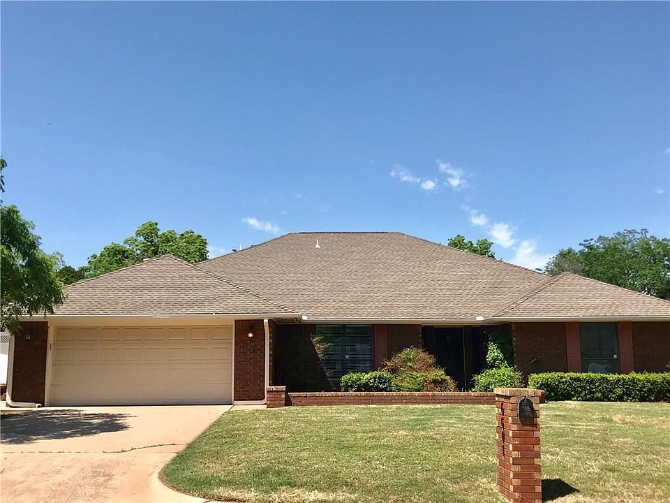 One Level spacious home with 3 beds, Large game room or possible 4th bedroom close to NW Expressway and Lake Hefner Trails. Enjoy the open family room with fireplace and two adjoining eating areas. Relax in the master bedroom with french doors to the sun room and en suite bath including double sinks and walk in closets. Laminate, bamboo, and tile flooring throughout most areas of the home. Extra space in the enclosed sun room and covered outdoor patio area along with storage shed in the backyard. Heat and air system updated 3 years ago; gas water heater 5 years ago. Dishwasher recently replaced and microwave replaced four years ago. Active, voluntary association for 75.00/year providing neighborhood events and upkeep to entrances and exterior green spaces. Add your touch to this home to make it yours!