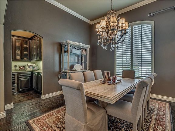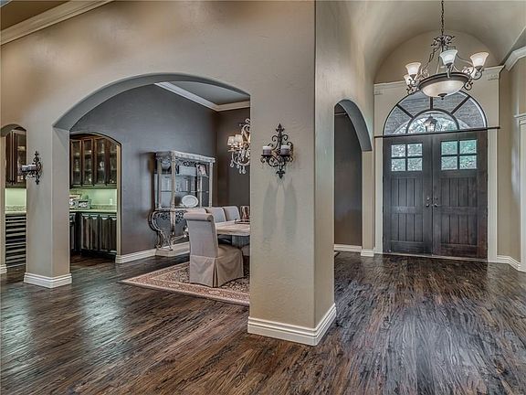 Expansive Luxury in The Summit at Oaktree... Situated with comfortable privacy in a cul-de-sac and surrounded by mature trees and peaceful creek. This true 4 bedroom home is filled with custom features and trim in every room. The massive kitchen was pleasantly over-built with large gas cooktop, double ovens and an elongated center island. Abundant storage is an obvious bonus here and other key places such as utility & butler's pantry, which includes a dual wine fridge. REAL hand scraped wood flooring adorns the main areas. The master suite is truly masterful! Spacious and inviting, both the bedroom and bathroom were designed with you in mind. The great room is the heart of this home with handsome bookshelves flanking the fireplace and a cathedral ceiling supporting a sizeable chandelier for elegant ambiance. Additional spaces include a well-appointed study and wide open bonus room, all on one floor! Outside enjoy additional parking with a porte-cochere setup. Welcome Home!