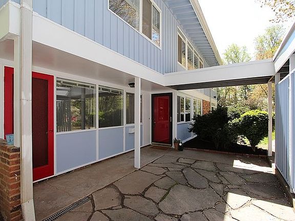Rare opportunity to own a mid-century modern gem designed by Lethbridge, nestled in Glen Echo Hts. 5BR 3BA with 3 FPs, dramatic high ceilings & walls of windows overlooking tree tops & sunsets. Nature pours into the living room, den & bedrooms. Big Master w/en-suite BA. Large screened porch. Updates: bathrooms, roof, furnace ('08), HWs, paint in & out ('12). Pool membership conveys. Home warranty