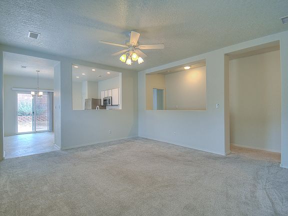 So much possibility in this ready-to-move-in home! This three bedroom, two bathroom home is very well maintained and a blank canvas for creativity. Carpeted bedrooms and great room. Sleek vinyl flooring in the quaint kitchen with a pantry for lots of storage. Easy maintenance landscaping in front and back yards. Quick commute to Albuquerque or Santa Fe! Set up a viewing soon, you'll want to make this house your home!