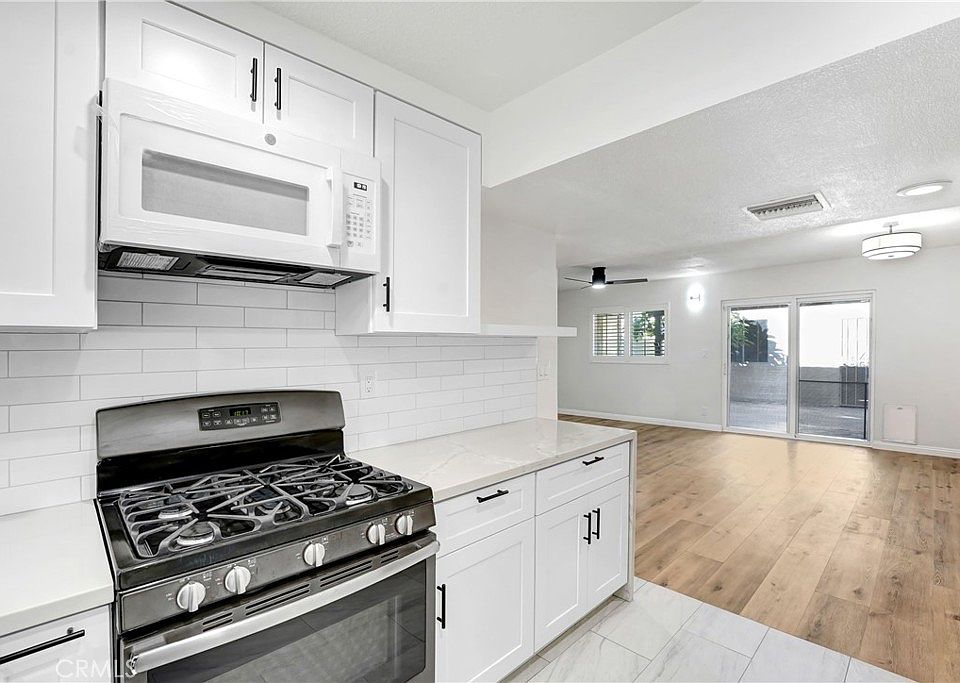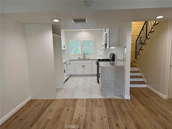 The Brand New kitchen is a true showstopper, featuring New Cabinets, Quartz countertops with backsplash, tile flooring, recessed lighting, a large sink, and modern appliances including a range, built-in microwave, and dishwasher, ideal for cooking and entertaining. Additional conveniences include a storage closet, a bath with step in shower, and a lower level laundry room. Move-in ready with laminate wood floors throughout.
