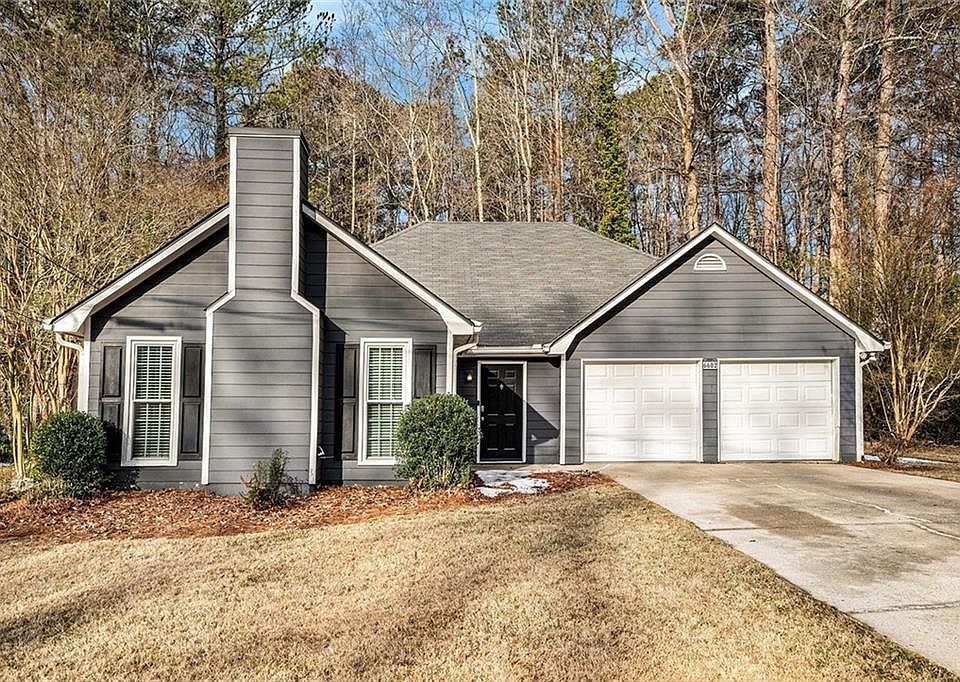 Beautiful 3-bed, 2-bath home with a 2-car attached garage, featuring a patio in both the backyard and side yard. The home boasts vinyl plank floors throughout carpet in bedrooms, with garage access from the front foyer and a convenient storage closet in the garage. The living room includes a fireplace and dining area, along with a cathedral ceiling for added elegance. The kitchen offers a breakfast space, stainless steel appliances, granite counters, white cabinets, a pantry, and a gas range. The hallway includes a laundry closet, while the guest bath features a tub/shower combo. The primary suite features tray ceilings, a walk-in closet, and a luxurious en-suite bath with a separate shower and soaking tub.