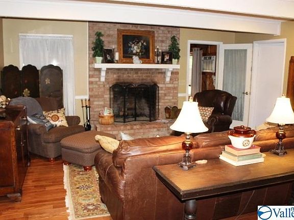 LOCATION, LOCATION, LOCATION...... This brick home is positioned nicely on 1 acre in the North Ft Payne area. Close to the schools AND interstate, this 2 BR with den/3rd BR, 2 BA home offers hardwood floors, ceramic tiled baths, central HVAC, kitchen with full appliance package and eating bar, family room with gas log fireplace, deck, 2 car carport and detached storage shed. There is a den which also has a gas log fireplace in addition to the family room that could be used for flexible space/3rd BR.... you decide. Just decide soon to see this property as it will not last long.