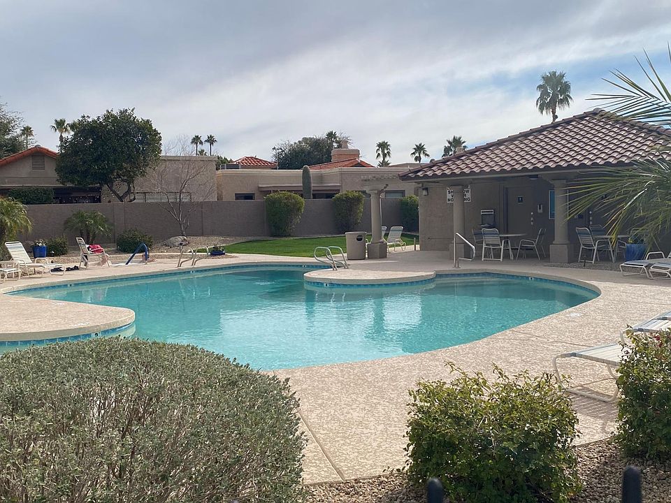 Current renovations include: new kitchen fridge, stove, microwave, dishwasher and faucet; new clothes dryer; new carpet; HVAC; door hardware and light switches. Primary bedroom has balcony with slider glass door and new shower door. New toilets throughout. Ceiling fans throughout. Community pool, spa and tennis courts. Garage door opener and epoxy floor. Close to Fashion Square, Chapparal park, spring training, restaurants, golf, walking and bike paths! Close to the 101 freeway. Come take a look One year lease. Pet deposit required and cleaning deposit required. Tenant responsible for utility bills with SRP and City of Scottsdale. Must abide by HOA cc&r rules. No overnight parking on the street and no pick up trucks/work trucks overnight in the driveway or street.