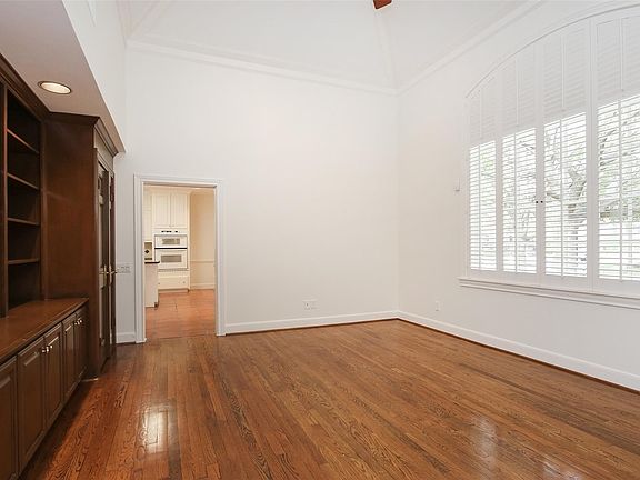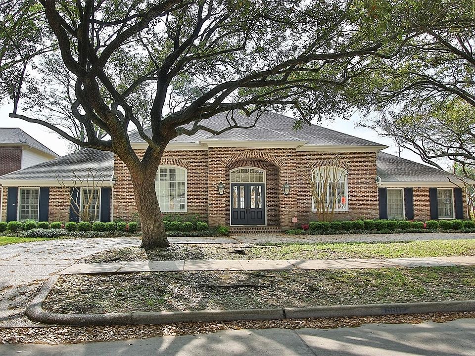 Elegant two story brick home on huge lushly landscaped corner lot with circular driveway affords plenty of parking. Updated and freshly painted inside and out, the grand two-story entrance leads to a private richly paneled study, open cozy family and formal dining room with wall of French doors, perfect for entertaining w/view of a European style patio/garden. The brightly lit Island kitchen features granite countertops w/tiled backsplash, Moms workplace center, Saltillo tiled flooring, custom cabinetry and a spacious breakfast area. All hardwood flooring down. The secluded primary suite with spacious bathroom with separate tub/shower, boasts an oversized custom built closet. Grand stairs lead to two generous bedrooms w/shared full bath, plenty of storage off the bedrooms. New A/C unit, overhauled sprinkler system, new lighting, ceiling fans, etc. Located on a desirable street, close to Med Center, Parks & shopping! A dream home! All per seller.