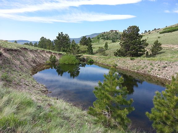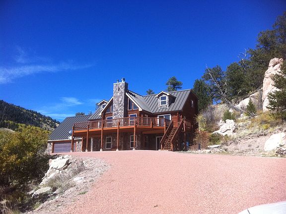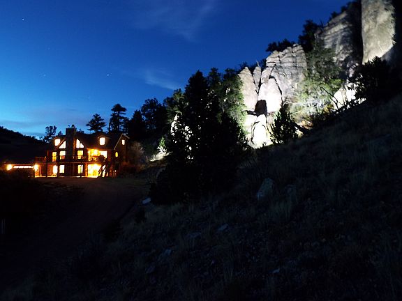 Quality log home lived in only briefly. Sits on a breathtaking 36 usable acres flushed to huge rock formations w/incredible views of the mountain range. Large seasonal pond set among gentle rolling hills. Rock formations light up, spectacular to see! Finished walkout basement includes a large bedroom, large storage area, family room with a 2nd fireplace, full bath, laundry and a large area for office or a larger FR. Bedroom has double French doors to just open up them to combine with the FR for one large recreation area. Home has nice use of space and is a nice mix of some log accent with regular wall space. Great room on main level with cat walk above where you'll find 2 good size (17 by 13) bedrooms and a full bath. Fireplace in great room, kitchen has granite counters with under lighting, new commercial grade carpet, antique style sink bases in 2 of the bathrooms, stained glass doors, granite shower in master bedroom, window seats in upper bedrooms. Well pumps 7 GPM, 1,000 gallon backup cistern tank, propane tank is owned. 2 car attached garage and huge breezeway attached to the home for easy access to home.Garage is 2 story w/2 windows and can easily be finished on the top portion for a workshop, home office or guest quarters. Large wrap around deck with access from the kitchen and main level bedroom. Main level bedroom has its own bath. Located in a gated ranch with good road maintenance year round. Total privacy and serene. One of a kind log home and setting that is hard to find!